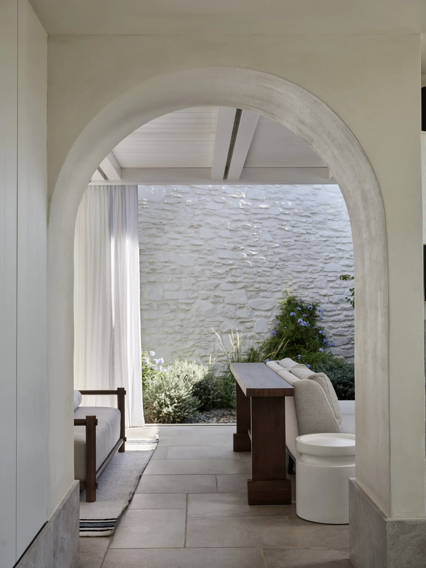 This isn’t design for design’s sake. It’s an interpretation of Cycladic austerity, clean, serene, and unforced. Arched corridors channel Byzantine monastic design. Interior tones stay muted to spotlight the surrounding natural light. Every space is intentional, even meditative. It’s not just about staying in a beautiful place; it’s about feeling the rhythm of the island through space and silence.