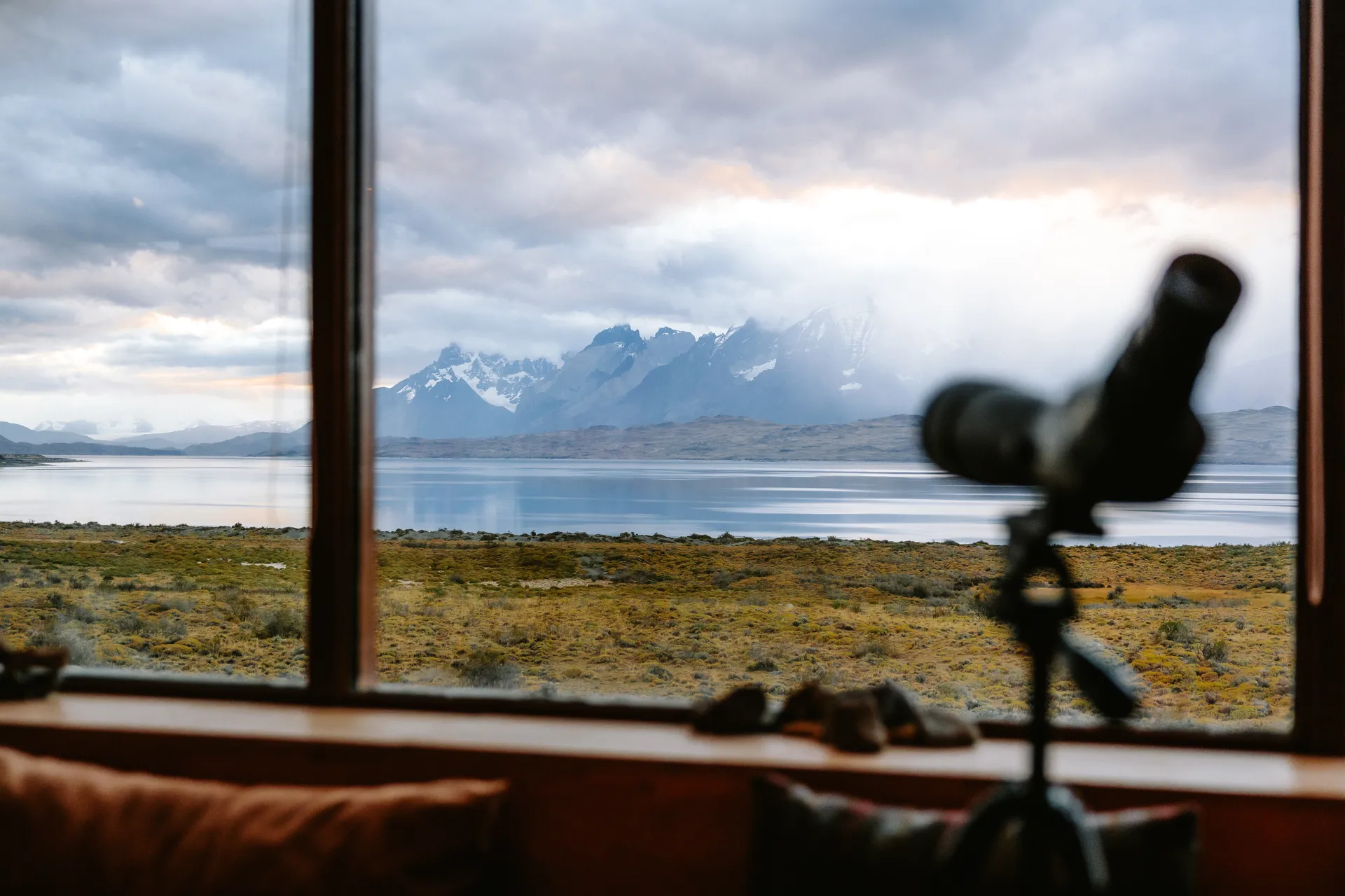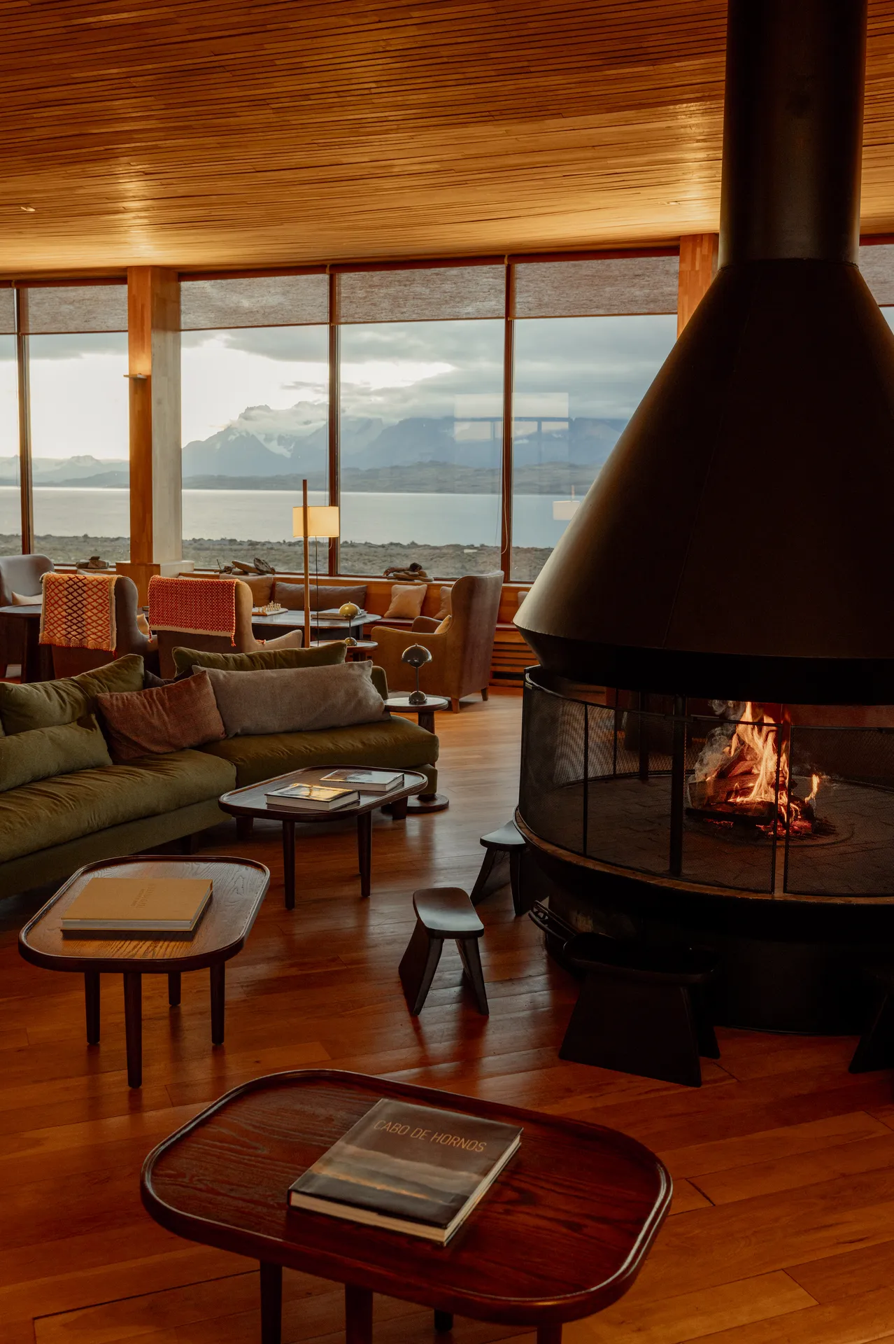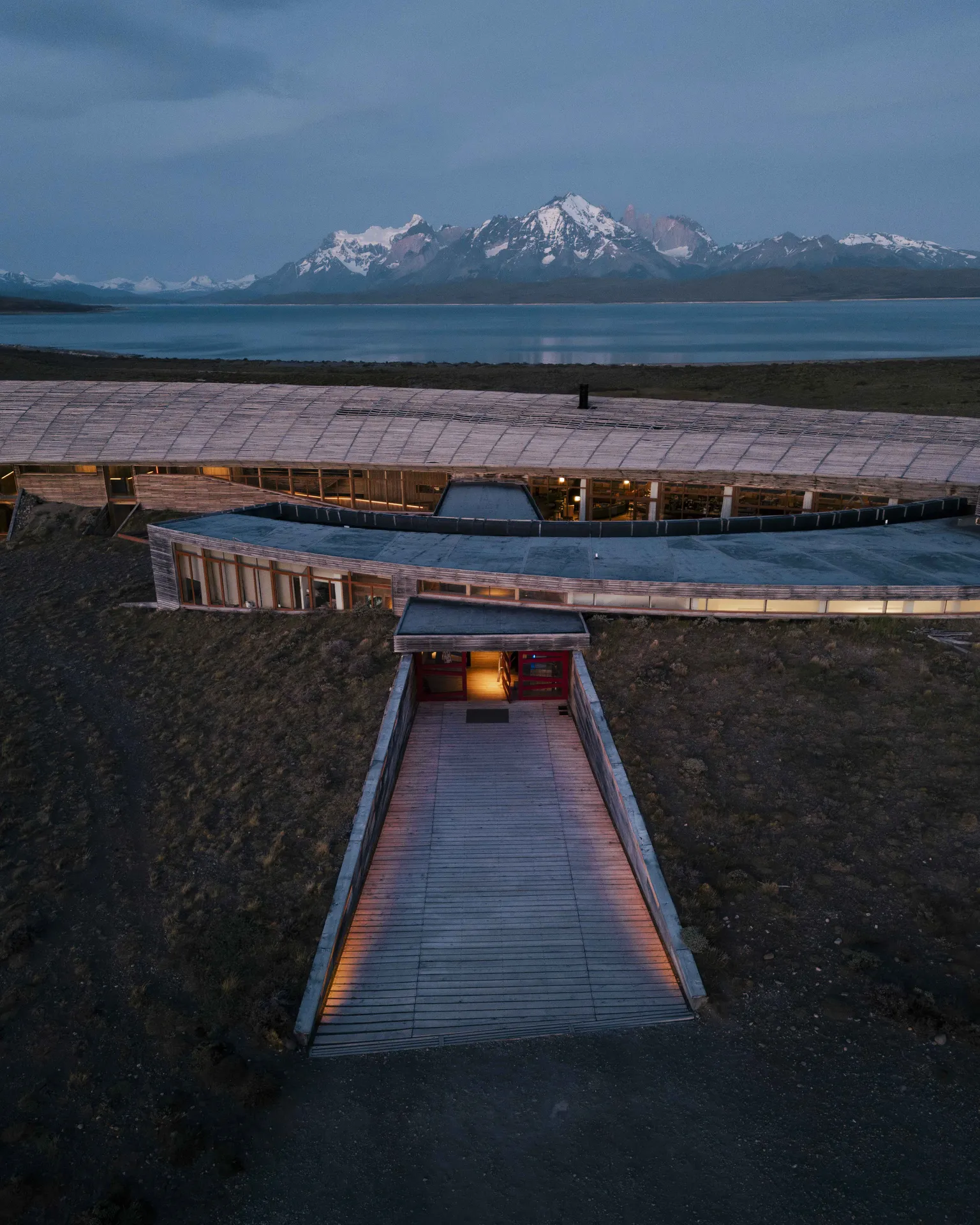 Tierra Patagonia stands as a contemporary testament to sustainable luxury amid the rugged beauty of Torres del Paine. The lodge was conceived by Chilean architect Cazú Zegers whose vision harmonises modern form with the raw landscape. The building’s long, low profile follows the contour of the shoreline, while extensive glass facades invite the dramatic vistas of Lake Sarmiento and the surrounding granite peaks into every room. Internally, a central atrium anchors the space, its vaulted ceiling echoing the open sky above. Natural stone, reclaimed timber, and locally sourced wool create a tactile dialogue between the structure and its environment, reinforcing a sense of place that feels both intimate and expansive.